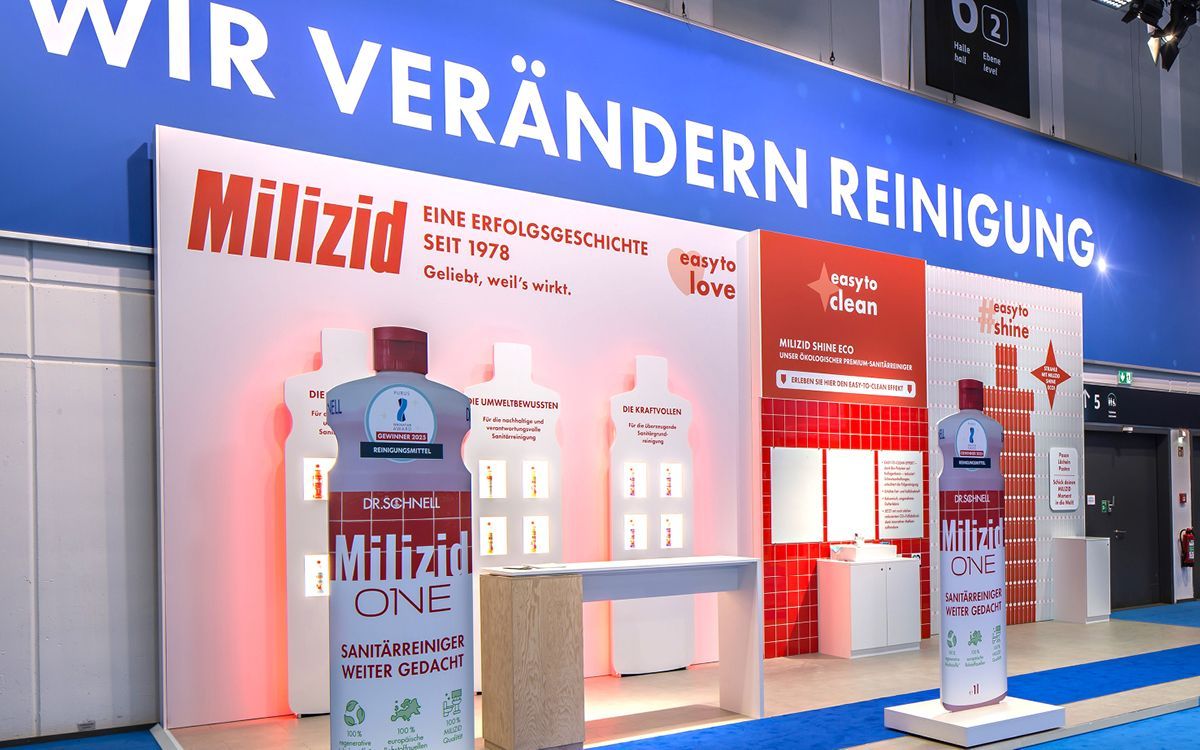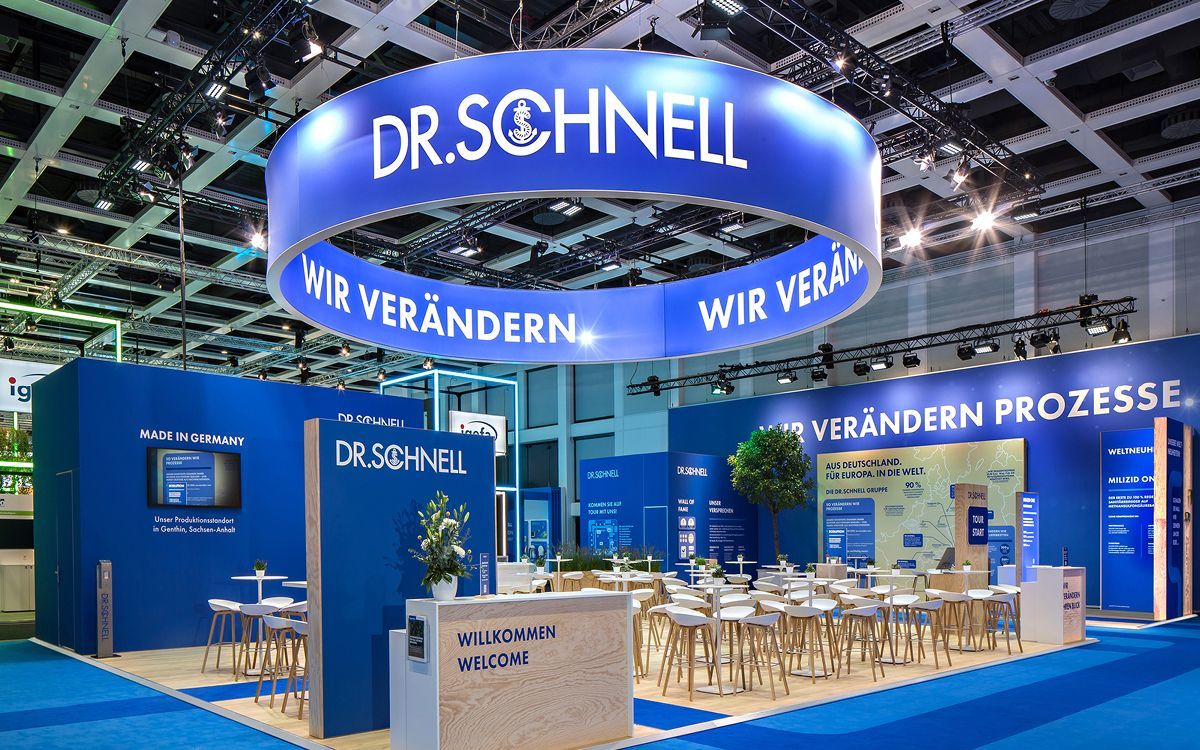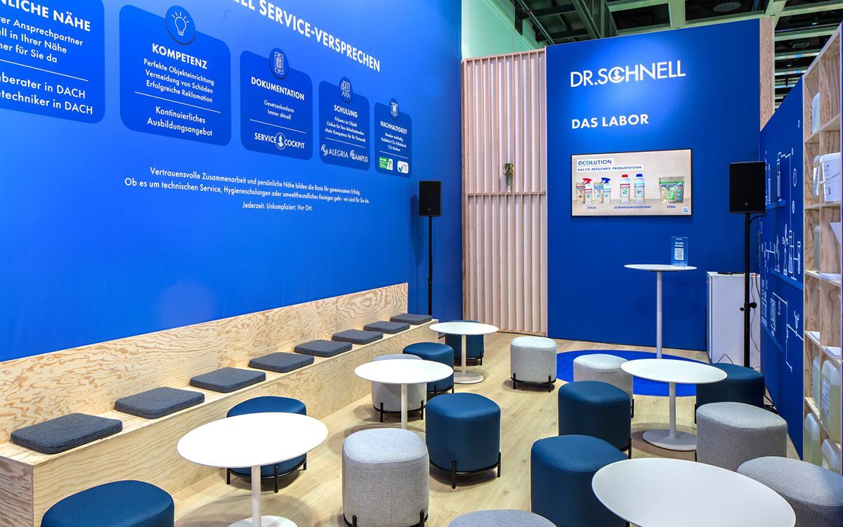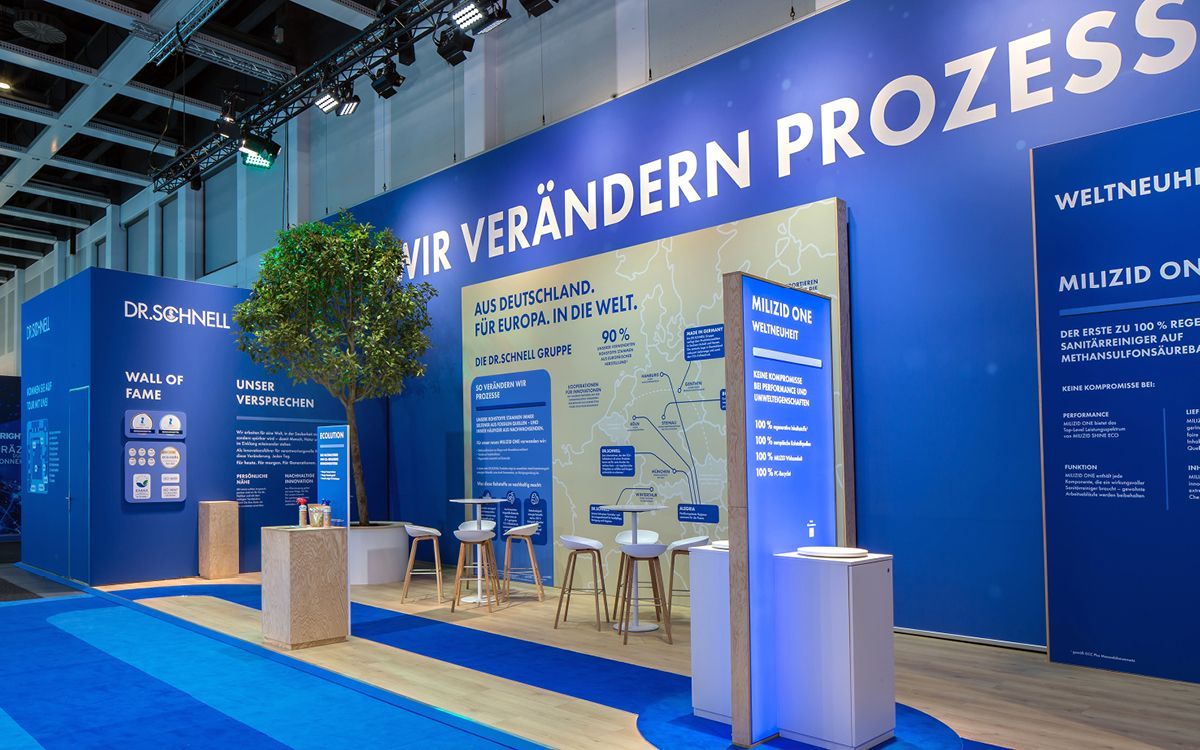 - Messeauftritt bestehend aus fünf Standflächen inklusive verbindender Hallengänge und Gestaltung der umgebenden Hallenwände