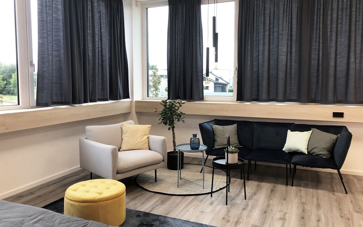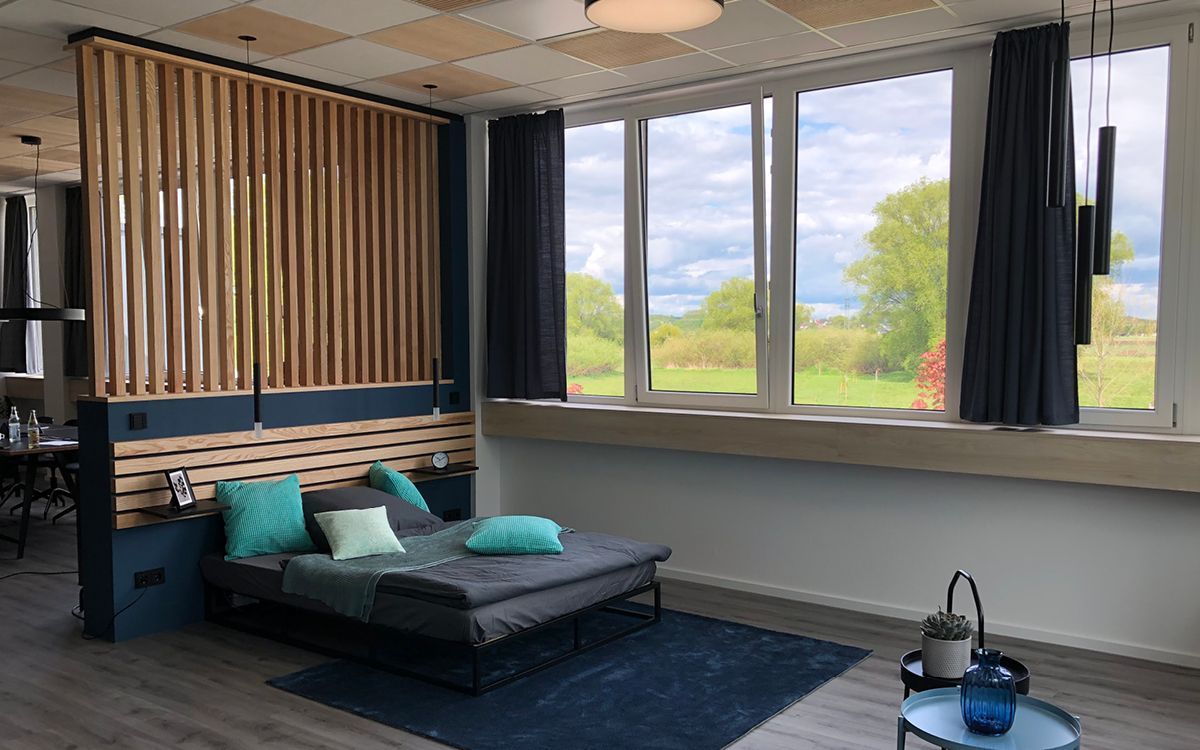 - Gestaltung der Ausstellungsfläche im Stil einer Wohnungssituation inkl. Eingangsbereich, Schlaf- und Wohnbereich, Office, Küche sowie Keller-/Technikbereich inkl. Individuell gefertigter Raumteiler und Sonderbauteilen